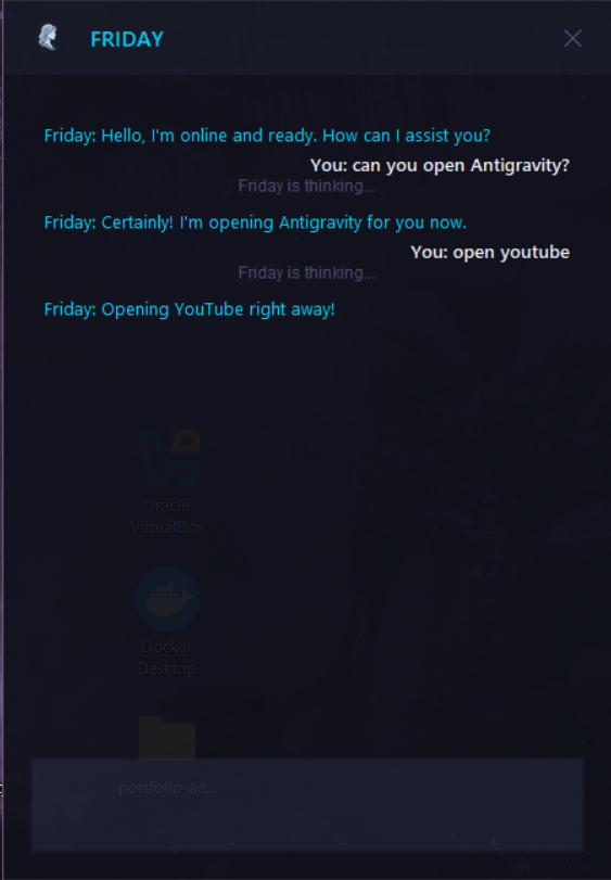 "Friday is an Autonomous OS Orchestrator that bridges the gap between Large Language Models and local system environments. Unlike standard chatbots, Friday utilizes a Dynamic Tool Registry and a Self-Healing API Client to execute real-world tasks (Media, File System, System Stats) on a Windows environment."